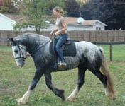 Killian was born on April 6, 2004. His Dam is Bell, 16.3 hh Drum Horse and his sire is a 17.2 hh Drum Horse in England, named Seymour. This foal is the only Drum Horse in the US carrying these lines! This “little” guy is most likely going to be grey when mature! He is a well bred foal and will be valuable to the Drum Horse gene pool! You can bet this boy is going to be something special!