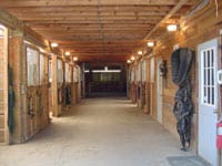 The new Monitor style barn (aka “the Training Barn”) is 36’ x 60’ and houses 12-12 x 12 stalls. The stall walls are “double” lined with kick boards and finishing board. The entire barn is constructed out of cedar. Also housed are a heated tack room/bathroon/office and utilityroom.