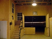 Below, Left: A few of the Preifert Stalls. Middle: The entrance into the Indoor arena. Right: Our elevated Viewing room with Office, Bathroom/Changing room and Storage room below.