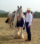 8/05 – Our Gypsy Vanner Stallion, Slainte, took Supreme Grand Champion at the GVHS Show in Ohio. He also took 1st in Western Pleasure and 2nd out of 20 horses in the Vanner color class. We were thrilled with his behavior and proud of his acomplishments! See below for more information from the show!