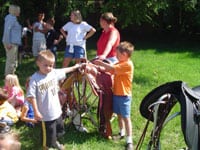 6/2006 – Gypsy Vanner demonstration for UJCC Daycare and Preschool. Our Gypsy Vanner mare Angel, traveled down the mountain to visit with the children of the UJCC Daycare and Preschool program! There she visited with children ages 1 to 12! The children learned about the history of the Vanner, what her tail and mane are for, how horse shoes are put on and the difference between Western and English Tack. We were impressed with the questions that we received and how well behaved all the children were!